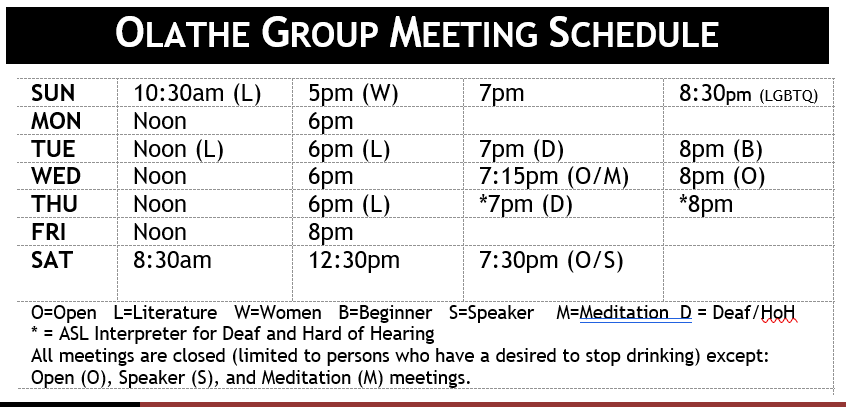 The Olathe Al-Anon Group and the Olathe Group Deaf AA Group (Part of the OG)